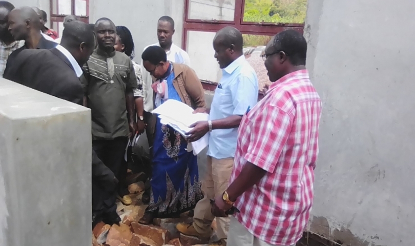 Ibanda District Chairman Mr. Kajwenge supervising the construction work of Kashozi Health centre 111 that is to be upgraded from Health Centre 2 status recently. The facility will be multipurpose for both inpatients and out patients. It will serve the whole population in Ishongororo Sub County in Ibanda North. Photo by Sylas Byaruhanga.